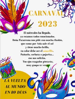 En nuestro Centro empezamos la semana con mucho color. Para ello, nuestra Señora Patarrona nos irá indicando el color de los complementos con los que vendremos cada día y que están relacionados con nuestro Proyecto de Biblioteca: La vuelta al mundo en 80 días.